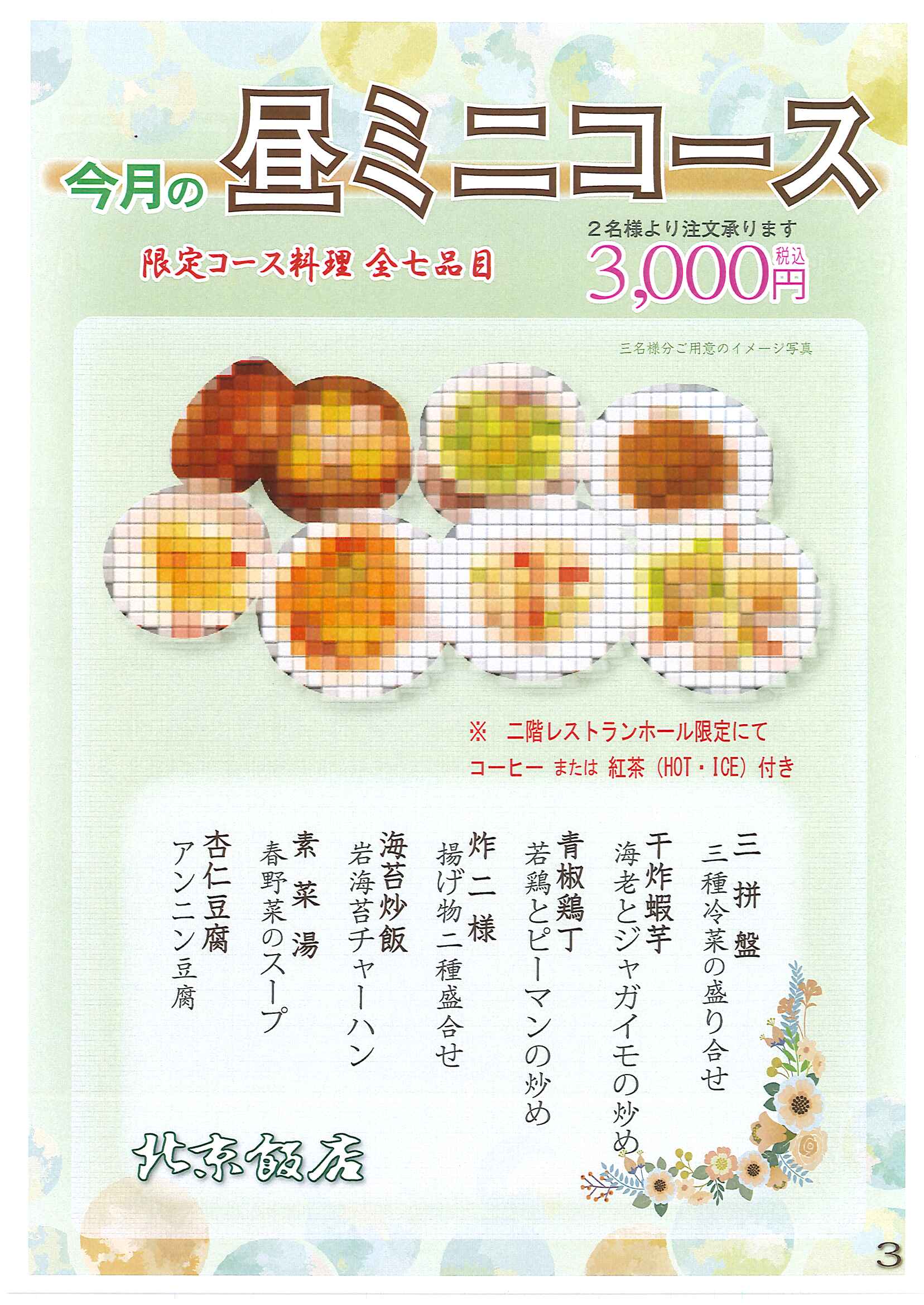 昼のミニコース 12/1~12/29お一人様3000円(税込)