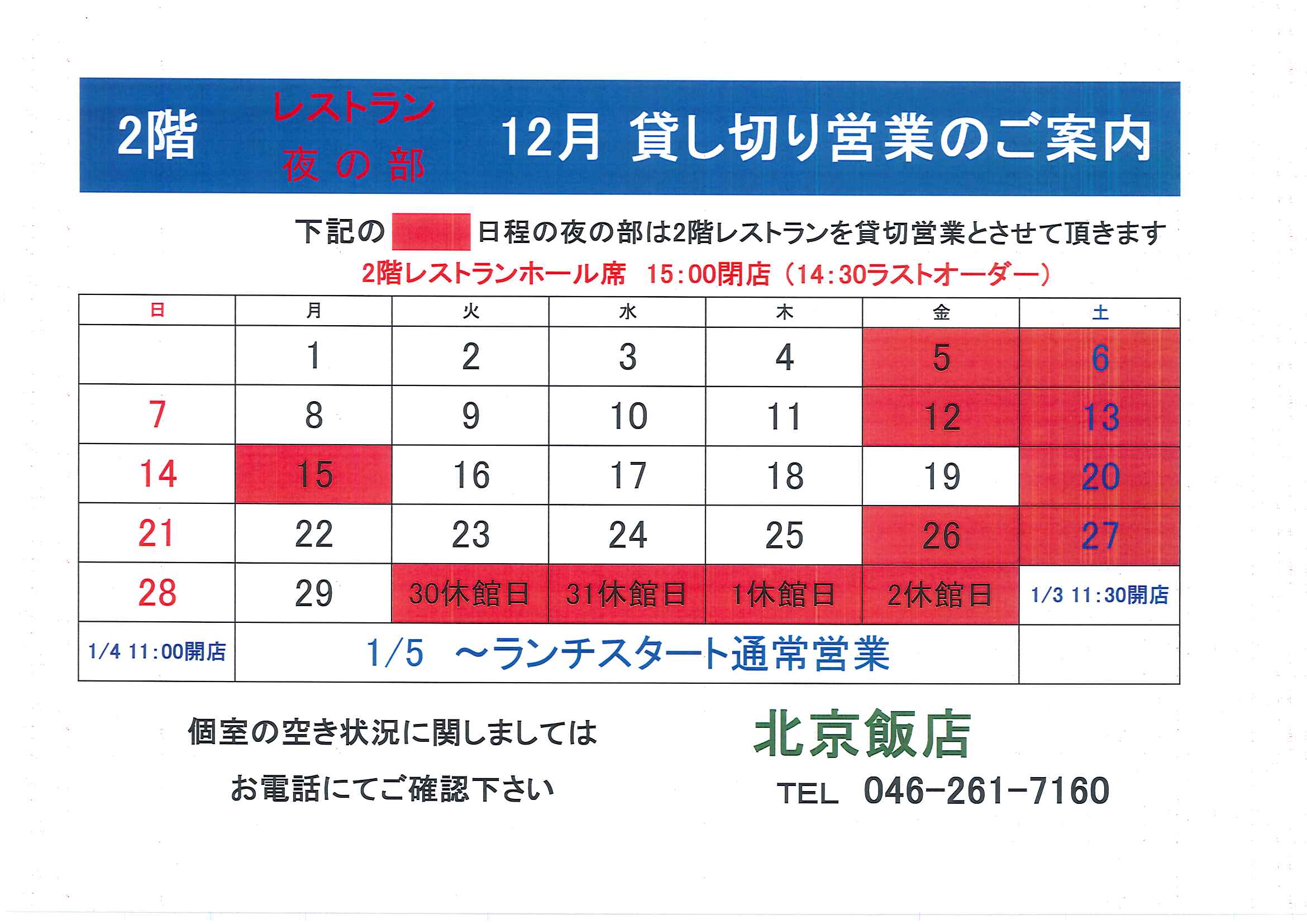 | 2025.11.01 | 12月の貸切営業のご案内 |