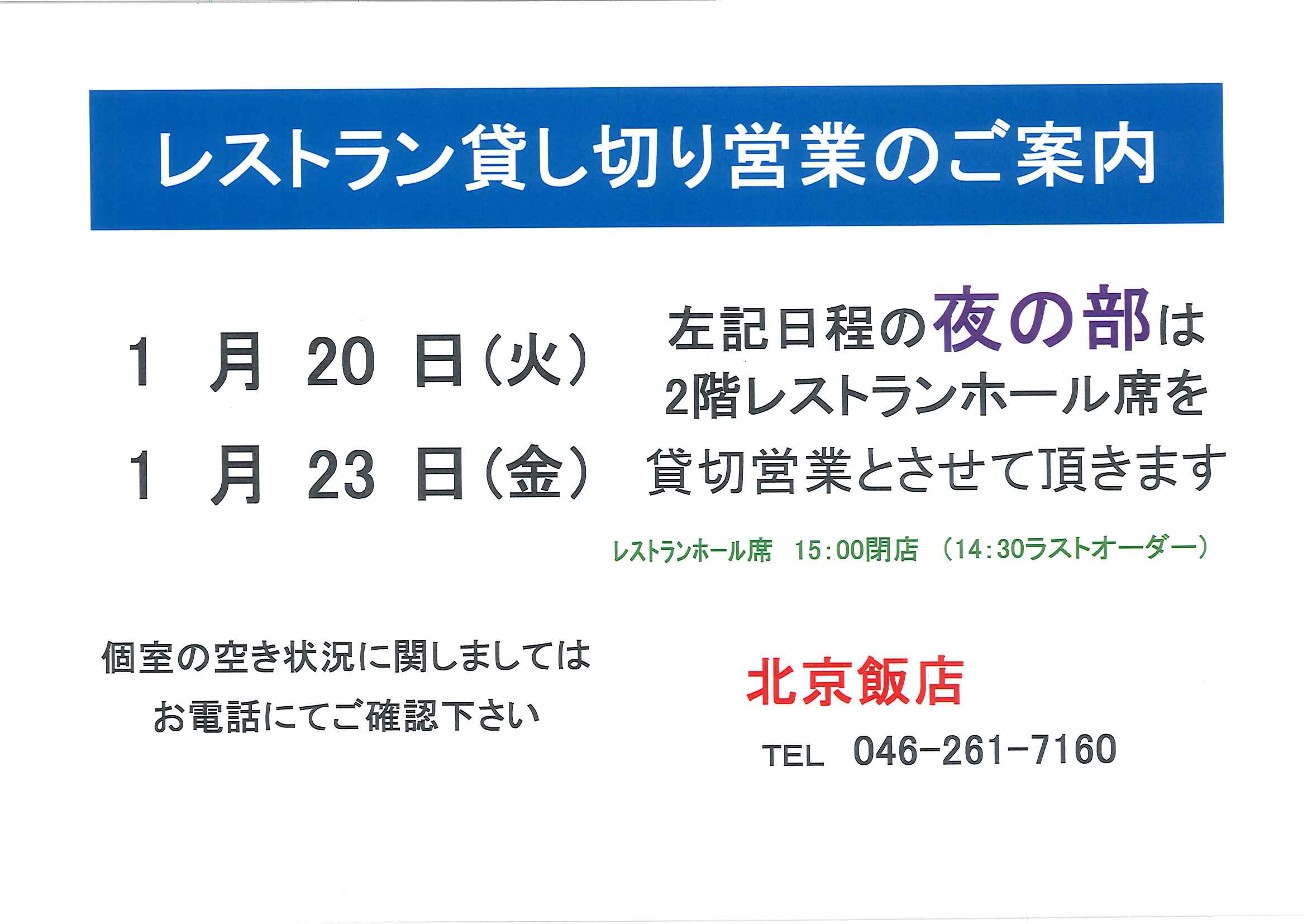 神奈川県大和駅前の老舗中華料理店 大型宴会、接待、ランチ、デリバリー、貸会議室まで北京飯店にお任せ下さい。